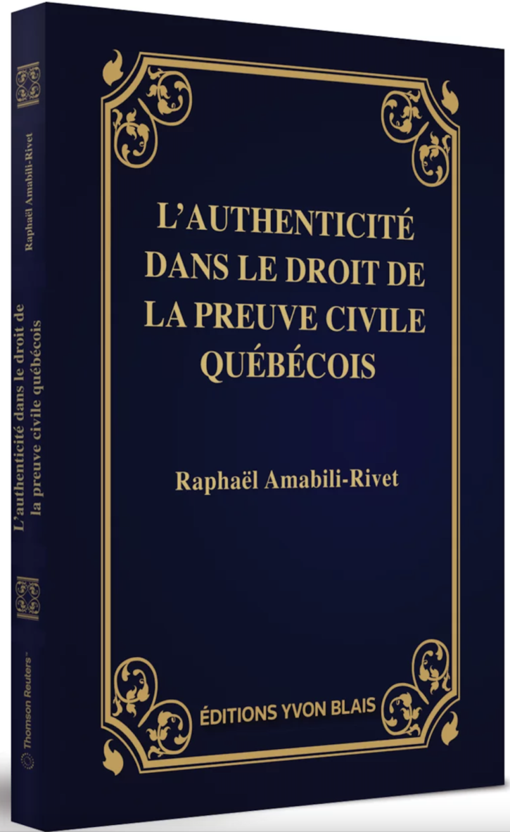 Préfaces Préface dans « L’authenticité dans le droit de la preuve civile québécois » de Me Raphaël Amabili-Rivet2024 Preuve